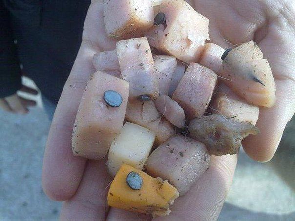 Еда с гвоздями... для собак и котов ... пусть тот, кто это делает сдохнет таким же способом и так же мучительно и долго