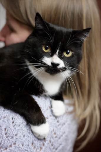 Дуняша и Лупонд отдыхают отдельно друг от друга, в разных местах и на определенном расстоянии. Иногда занимают места, на которых отдыхает кто то другой, но это не часто бывает. А тут получилось, что на сложенный плед в кресле возле окошка, на котором до этого спал и просто отдыхал Лупондик, легла Дунечка и стала мирно посапывать. Пью я чай, а котику-обормотику нечем заняться. Он и по комнате прошелся и по коридору. Потом через это кресло забрался на окошко, спрыгнул на пол, в общем маялся. А потом смотрю направляется в сторону Дуни. Думаю, что же дальше будет. Смотрю собирается примостится рядышком. Малышка приподняла головку сквозь сон и продолжила спасть дальше (если бы не этот факт, то ничего бы не было). И коник лег возле нее, начал скручиваться в клубок и тоже уснул. Как же я обрадовалась