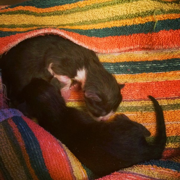 Вчера нашли на дороге двух котят, слепых, только рождённых. Не смогли их бросить погибать.