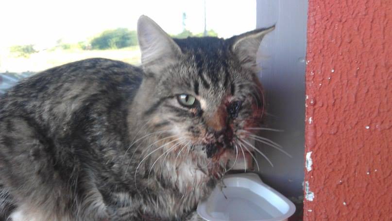 Сломана челюсть, внутри все загноено очень сильно...Глаза почти нет. Прогноз пока не ясен. Пока останавливают процессы гниения тканей, промывают, антибиотики колют. Если выживет - потербуется операция.