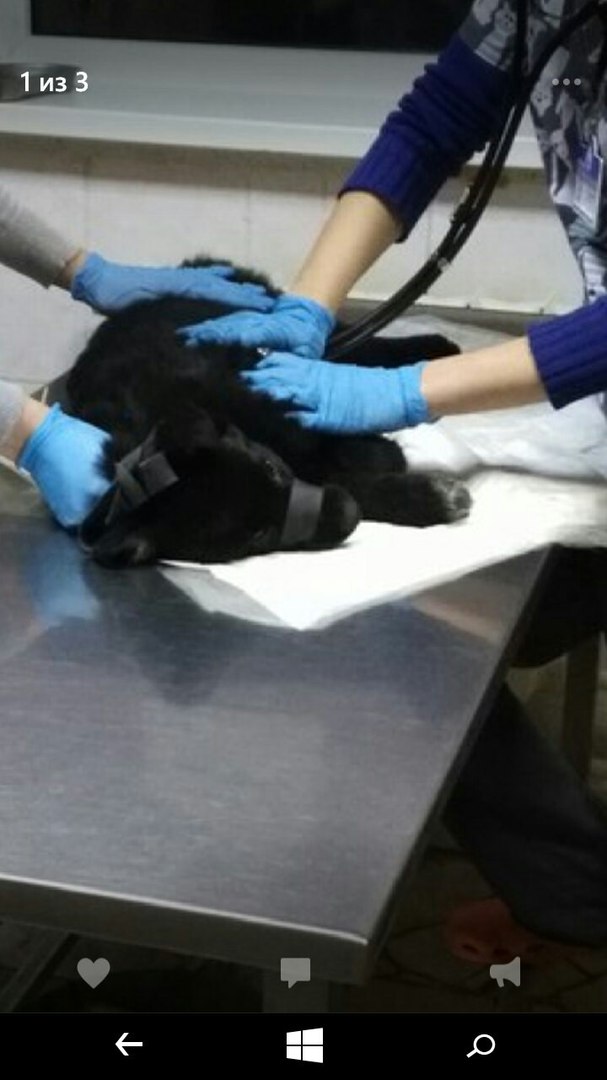 Собачка была под землей шестеро суток. Это семимесячная девочка. Ее повезли в клинику на Филимонова. Вчера было подозрение на перелом лапки, но оказалось, что лапку отлежала в узком проеме, температура сорок. Сняли огромного клеща. Теперь подозрение на пироплазмоз. Вечером провели все необходимые мероприятия по анализам, сегодня будет известно. Сегодня температура нормальная!
