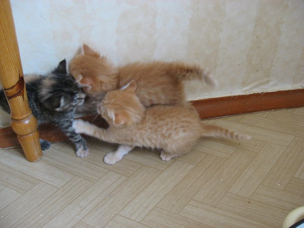 Окрас:рыжий пушистик - мальчик, специя и полосатик -девочки!