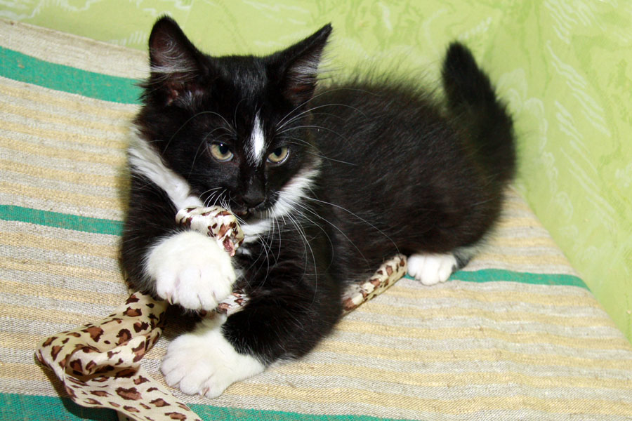 Шустрый, весёлый, заводной котёнок готов к переезду в новый дом! У малыша глянцевая, приятная на ощупь чёрная шёрстка, белые носочки и грудка, вырастет полупушистым статным котиком. Любит спать на коленках в перерывах между играми. К лотку приучен, возраст - 2 месяца! Звоните и приходите знакомиться! 0296-50-97-29 Оксана