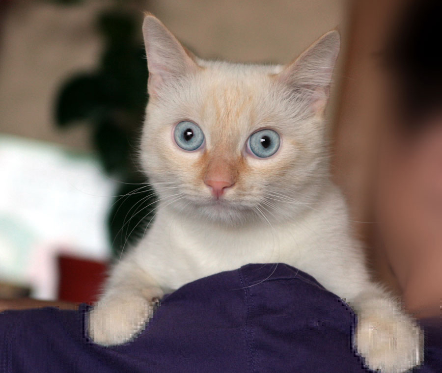 Характер: контактный, дружелюбный и очень милый кото-ребёнок, не проявляющий агрессии. Очень любит "ездить" на ручках, обхватив нежными лапками и прижимаясь всем тельцем. Любит Пастернака: всегда рад царственно возлежать у подножия книги сего автора