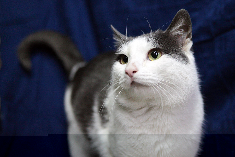 Окрас:Белый с серым, а точнее, с голубым.