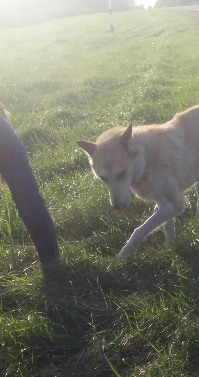 По дороге на Нарочь в д. Илья обнаружили такую несчастную собаку. Бегает за машинами очень голодная, но культурная и благодарная девочка, похожа на лайку. Не уходит с дороги и буквально пытается залезть в каждую притормаживающую машину. Никто не терял, не забывал? Извините за качество фото, сделаны на скорую руку.