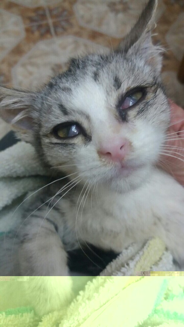 Истощенный котенок теряет зрение!