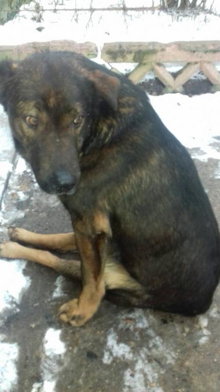 Военный городок Околица (Острошицкий). Уже две недели страдает местный пёс. Передвигается на передних лапах. Скорее всего, сбила машина. Возраст 9-10 лет. На месте его все жалеют, кормят, но, как всегда, помочь ничем не могут.