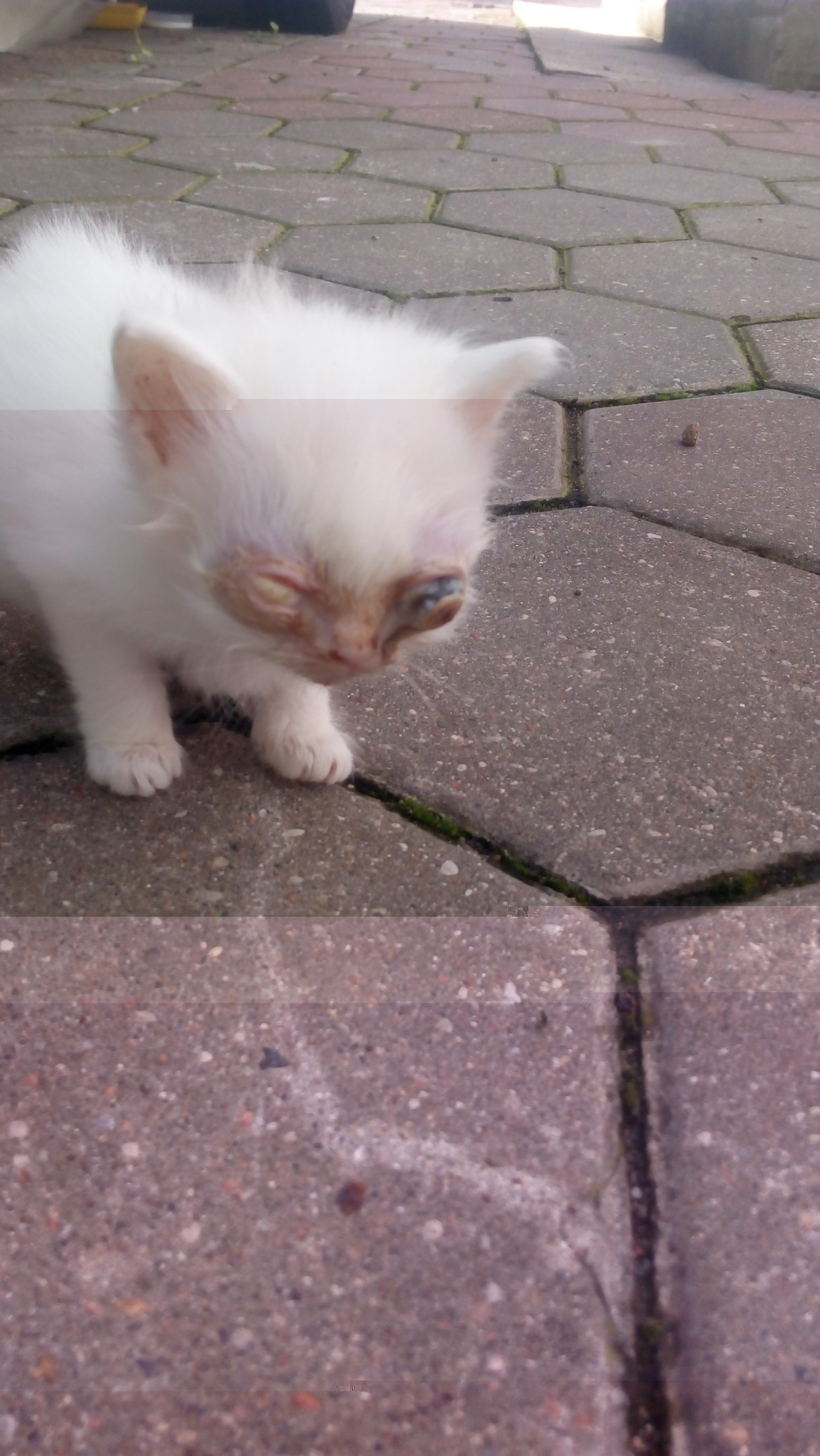 "На территории одного из банков под автомобилем инкассации кошка родила котят, всего их 4-5, сидят в коробке под машиной, сегодня первый уже вылез и стал передвигаться по территории, с глазами беда.